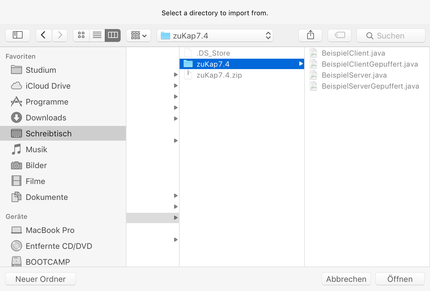 Im Rechten der beiden Felder unter dem Quellverzeichnis sehen Sie nun alle sich in dem Ordner befindlichen Quellcodes. Markieren Sie die, die Sie importieren wollen, mit einem Haken.