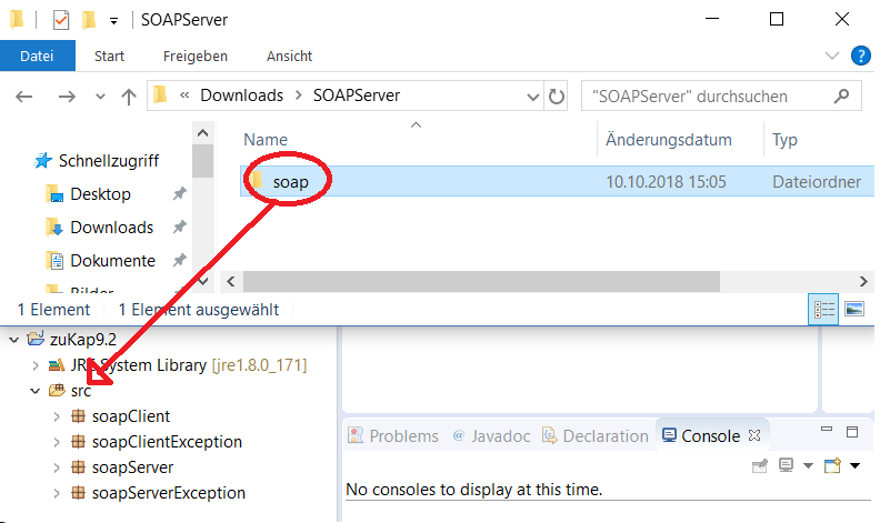 Steht ein entsprechendes Projekt zur Verfügung, schieben Sie den entpackten Ordner soap in dieses Projekt hinein.